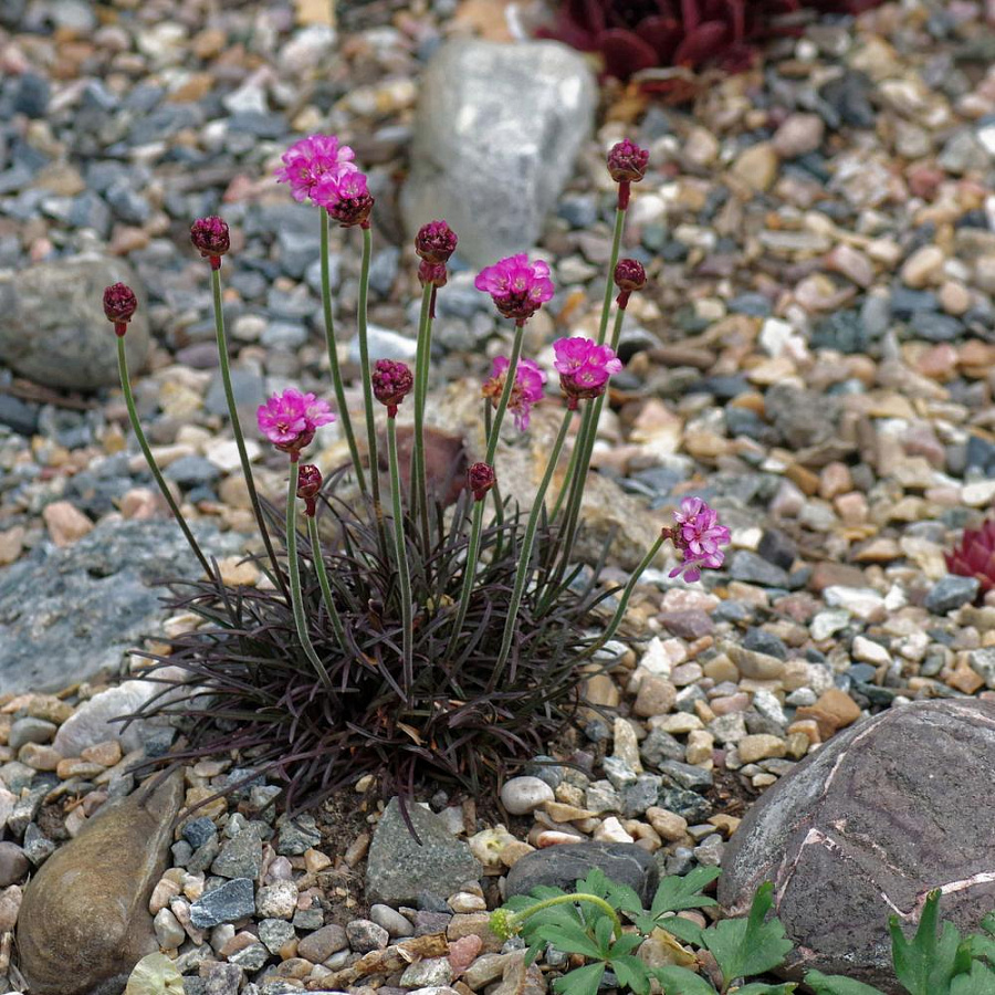 Рассада армерии приморской Vesuvius отличается неприхотливостью, поэтому ее смело могут приобретать садоводы-новички. Растение высотой около 15 сантиметров станет прекрасным украшением альпийской горки, каменистого участка или газона. Подушкообразный куст сохраняет декоративность до поздней осени. В конце весны среди узких листьев распускаются розовые соцветия. Армерия приморская Vesuvius нуждается в хорошем дренаже, потому что не выносит застоя воды. Этот сорт можно сочетать с другими видами почвопокровников, создавая эффектные композиции.