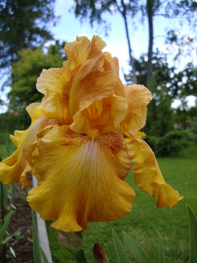 Ирис бородатый раунд тейбл - это изысканное растение с великолепными желтыми цветками, дополненными бронзовыми нижними лепестками с желтой каймой. Этот сорт ириса поражает своей красотой и изяществом, привлекая внимание своим необычным окрасом. Высота растения достигает 80 см, что делает его заметным акцентом в саду или на клумбе. Листья ириса имеют интересную форму, что добавляет ему шарма и оригинальности.