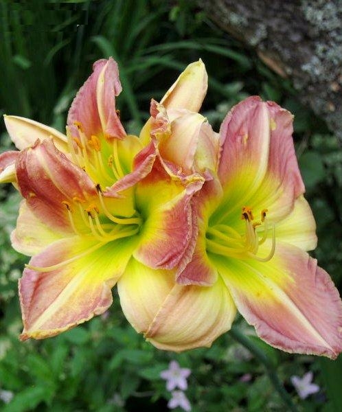Окраска цветка : Розово-желтый с зеленым горлом