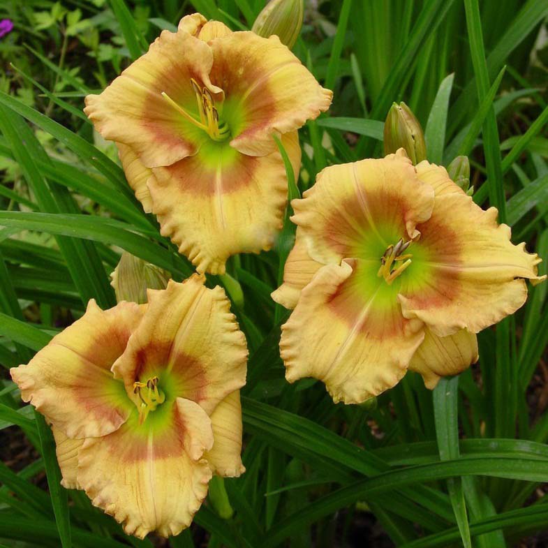 • Окраска цветка : Медово-жёлтая с винным пятном и зелёным горлом