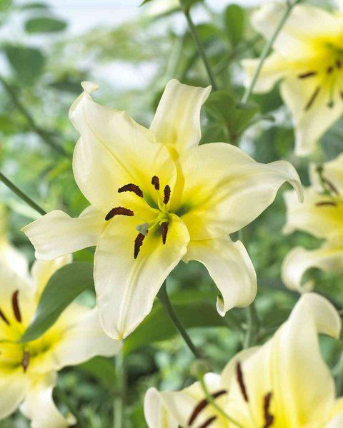 Луковицы лилии ОТ-гибрид Лейт Морнинг (Lilium OT-hybrid Late Morning) в открытом грунте предпочитают богатые питательными веществами почвы, постоянный приток влаги с хорошим дренажем, защиту от ветра и сквозняков. Высота взрослого растения – 140 см. Цветки диаметром 24 см обладают слабым, едва уловимым ароматом, ощущаемым только поблизости от кустов. Окраска лепестков кремово-белая с ярким сочным желтым центром. Края сильно волнистые, кончики закручиваются от центра. Пыльники мелкие, на короткой ножке контрастного темно-коричневого цвета. Многолетник хорош для срезки, групповых посадок и миксбордеров.