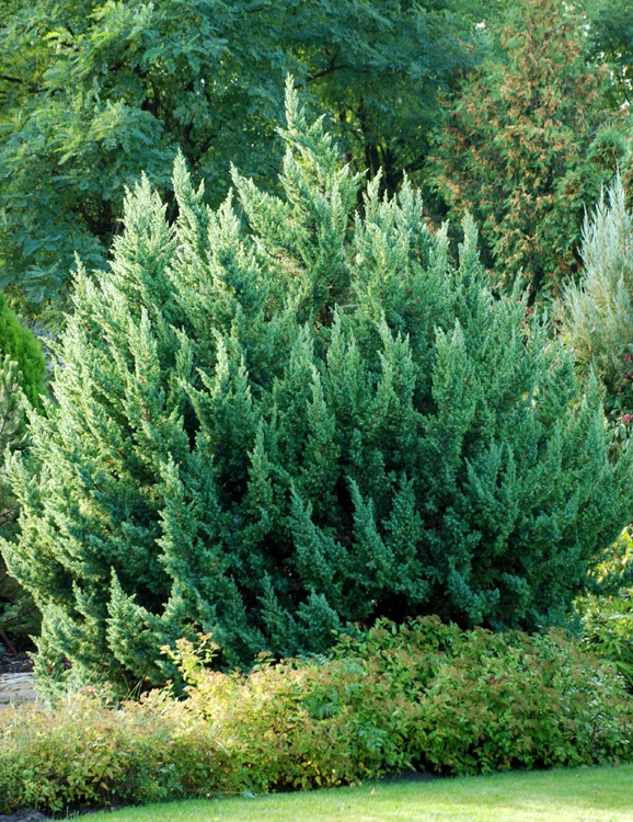 Саженцы можжевельника китайского Монарх (Juniperus chinensis Monarch) отлично подходят для выращивания на не очень благоприятных почвах. Растение неприхотливое. Хорошо растет на бедных почвах, выносит полутень. Разрастается можжевельник китайский Монарх в высоту до 3 метров, а в ширину – до 1,5 метров. Хвоя кустарника колючая, окрашена в голубовато-зеленый оттенок. Используется культура в различных садах, в одиночных и групповых посадках, в живых изгородях. Крона можжевельника широко-колонновидной формы, хорошо переносит формирующую стрижку.