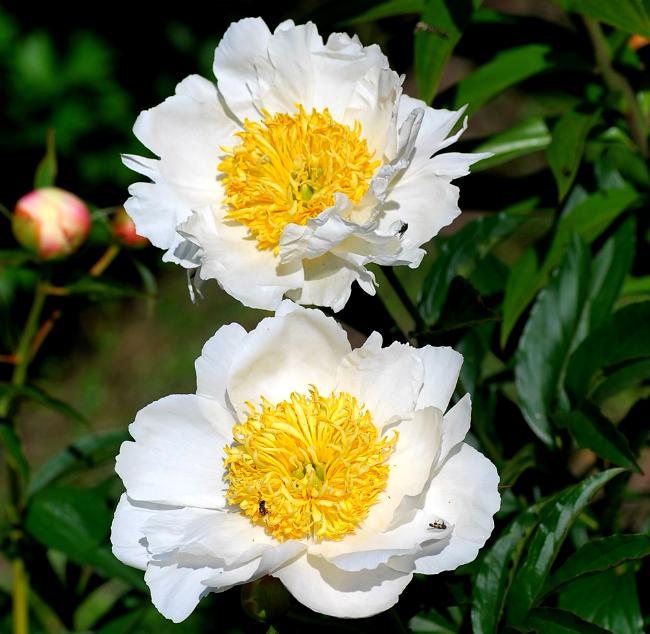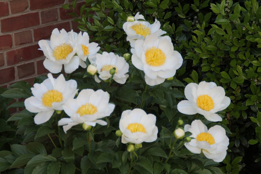 Луковицы пиона для патио Дублин ― превосходное и удачное приобретение для тех, кто хочет украсить свой сад необычным ароматным пионом. В высоту взрослое растение не превышает 25 сантиметров, поэтому успешно выращивается не только в открытом грунте, но и в кашпо. С его помощью можно украсить террасу, беседку или патио. Пион с поздним сроком цветения представляет собой настоящий букет, который состоит из крупных цветков белого цвета. Каждый цветок украшает высокий сливочно-золотистый центр. В сортовой серии можно подобрать достойную компанию пиону Дублин из других контрастных цветов.