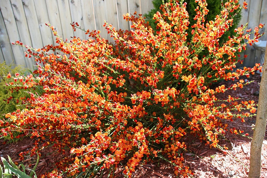 Саженцы ракитника гибридного Лена (Cytisus, Lena) используются для озеленения садов, палисадников и других открытых территорий с бедной сухой почвой. Кустарник плотный и ветвистый, с изящными побегами. Высота и диаметр взрослого растения достигают 120-150 сантиметров. Цветение длится на протяжении всего лета. Декоративная культура известна своими оранжево-желтыми и рубиново-красными цветами, усеянными вдоль цветоноса. Листья крошечные, овально-ланцетной формы. Ракитник редко можно встретить в наших палисадниках, тем не менее он завоевал огромную популярность в Европе.